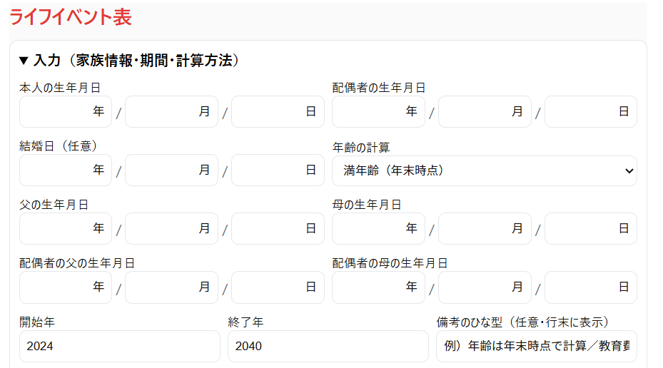 | ✅ 生年月日入力 | 本人・配偶者・子ども・両親の誕生日を入力可能 |